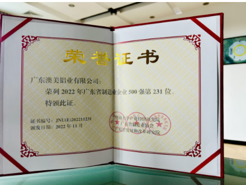 2023. 01. 06Congratulations to PMI for being honored as one of the top 500 manufacturing enterprises in Guangdong Province once again.It is a recognition of our years of deep commitment to industrial aluminum pro...
